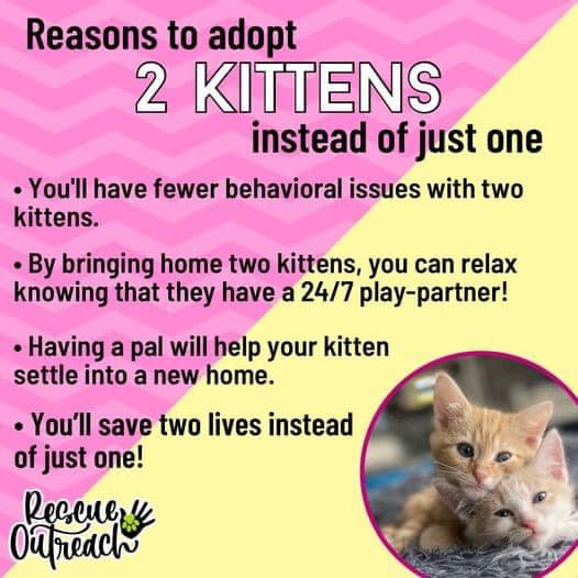 Adopting in pairs is beneficial for so many reasons. Please consider adopting two of our cats or kittens instead of just one.